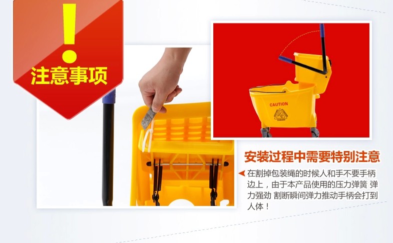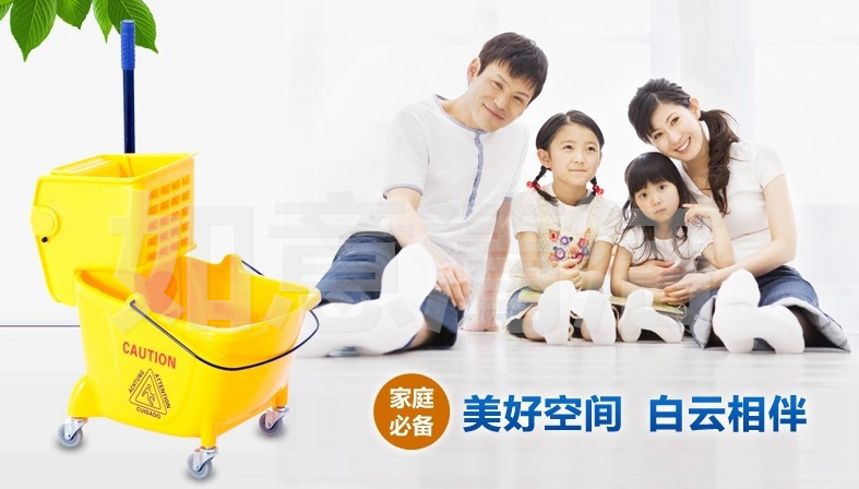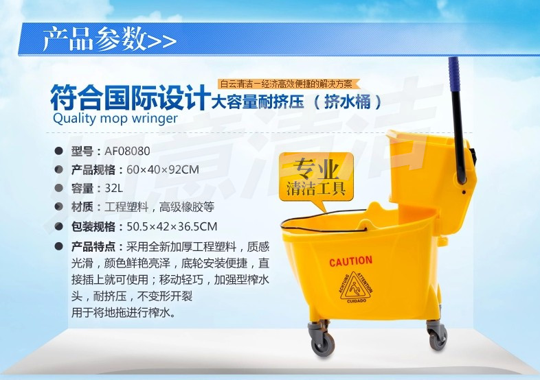 白云清洁AF08080高级单桶榨水车 酒店家居轻便式挤水桶 32L拖把桶